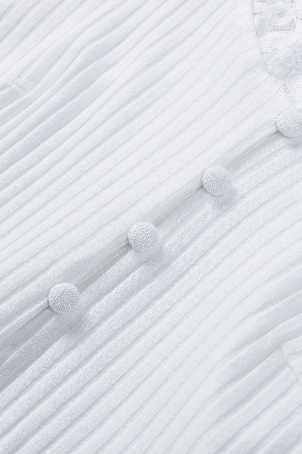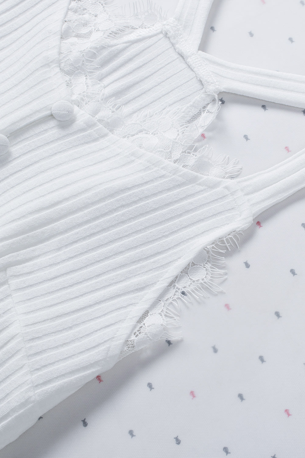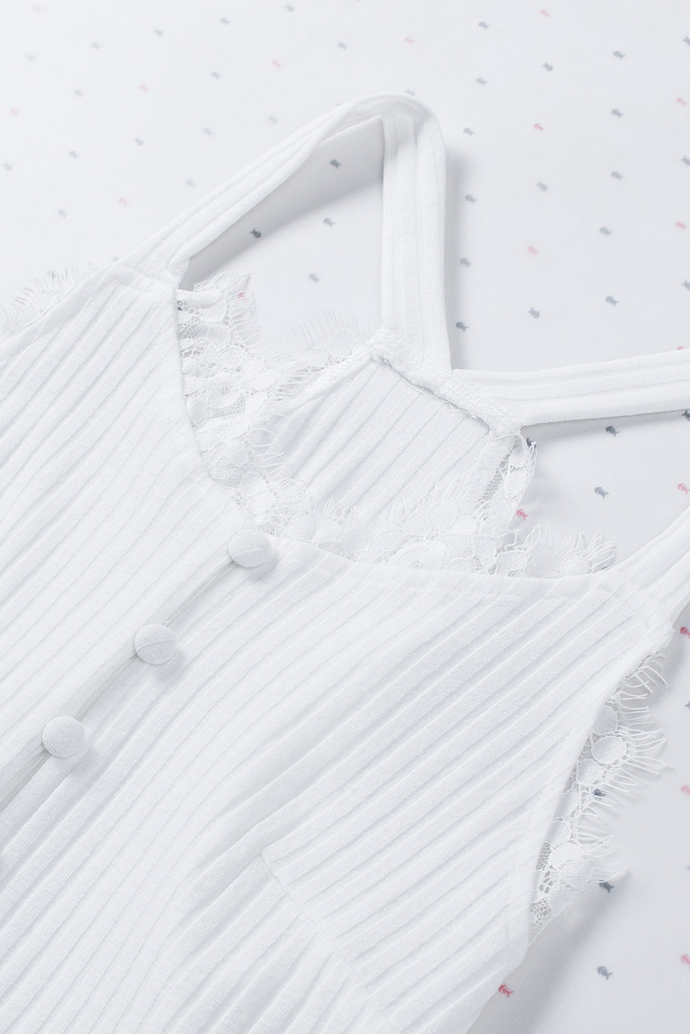 Lace-trimmed, adjustable racerback straps, button-front detail